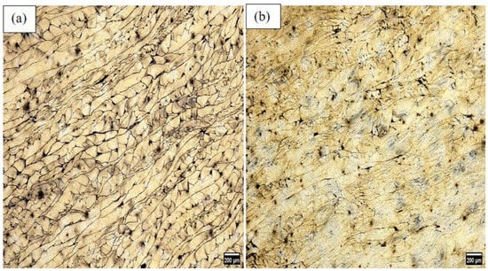 Optical micrographs of consolidated AZ31 samples using ECAP at 300 C after (a) 1-A (one pass) and (b) 2-A (two passes). Extrusion direction (ED) is to the right [].