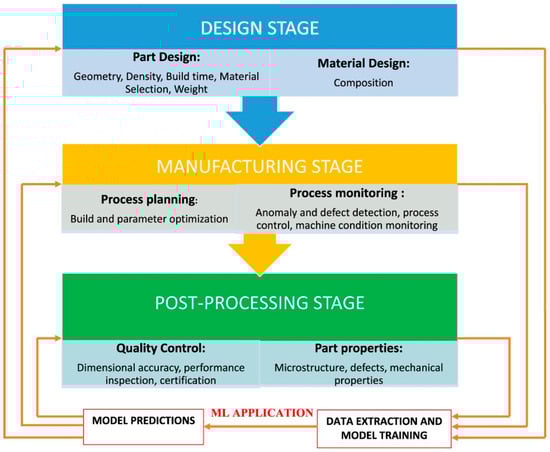 - Wang, Z.; Yang, W.; Liu, Q.; Zhao, Y.; Liu, P.; Wu, D.; Banu, M.; Chen, L. Data-Driven Modeling of Process, Structure and Property in Additive Manufacturing: A Review and Future Directions. J. Manuf. Process. 2022, 77, 13–31. [Google Scholar] [CrossRef]