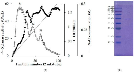 - Ninawe, S.; Kapoor, M.; Kuhad, R.C. Purification and characterization of extracellular xylanase from Streptomyces cyaneus SN32. Bioresour. Technol. 2007, 99, 1252–1258. [Google Scholar] [CrossRef] [PubMed]