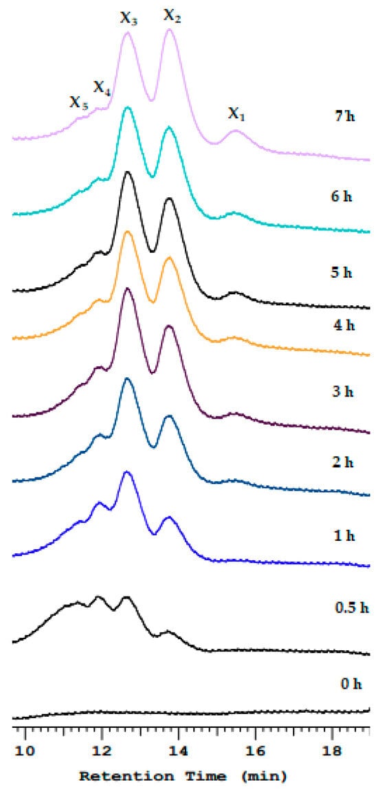 2.4. Hydrolysis Pattern and Xylooligosaccharide Production