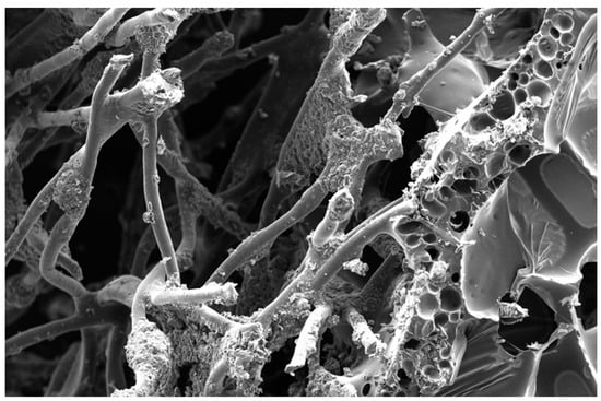 Dishwashing sponges are a ubiquitous element in practically every kitchen around the world, where they are considered indispensable for efficiently cleaning dishes, pans, and cutlery to achieve hygiene []. However, what often goes unnoticed is the considerable environmental impact these sponges have on our global ecology. To this end, the widespread use of dishwashing sponges represents a significant environmental concern, as sponges are often manufactured from synthetic materials, such as polyurethane and polyethylene, which originate from petroleum. The problems associated with these materials are caused by the inefficiency of recycling, where dishwashing sponges are not easily recyclable due to the complex combination of materials, which end up in landfills or being incinerated, further increasing environmental problems, especially in regions of countries considered in development. According to the World Wide Fund for Nature (WWF) [], Brazil is the fourth largest producer of plastic waste in the world, behind the United States, China, and India, with only 1.2% of the total recycled in 2016 second [,].