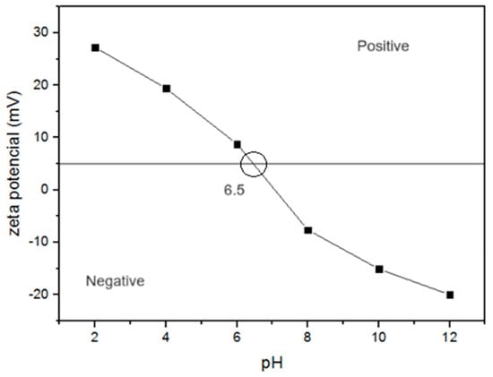 The Zeta potential was performed to obtain the isoelectric potential of the material, as shown in Figure 2.