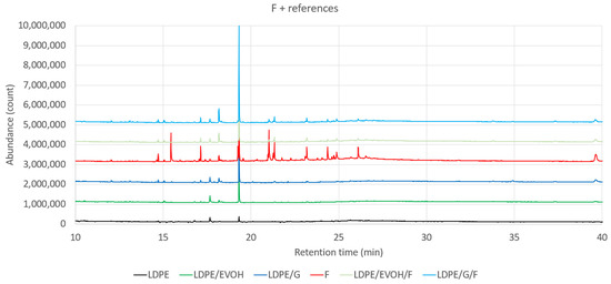 GC-MS chromatograms for samples containing the recycled material F.