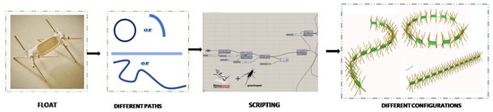 This study delves into the exploration of lattice structures and their constraints in the design of troughs for different site conditions. This research aims to develop various lattice configurations that adapt FLOAT’s lattice geometry in different urban farming contexts by transforming linear arrangements of troughs into gentle curvilinear configurations as shown in Figure 6. Additionally, this study explores AM techniques for trough geometry using parametric scripting tools like Grasshopper for Rhino. It iterates the linear FLOAT module design configurations to adapt to specific paths, analyzing lattice structure limitations and developing an adaptive script for desired geometries based on input curves.