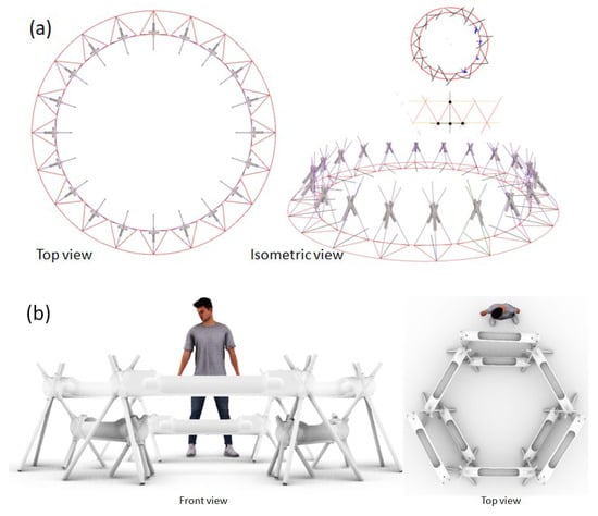 (a) Circular lattice configuration. (b) 3D rendering of Circular Prototype.