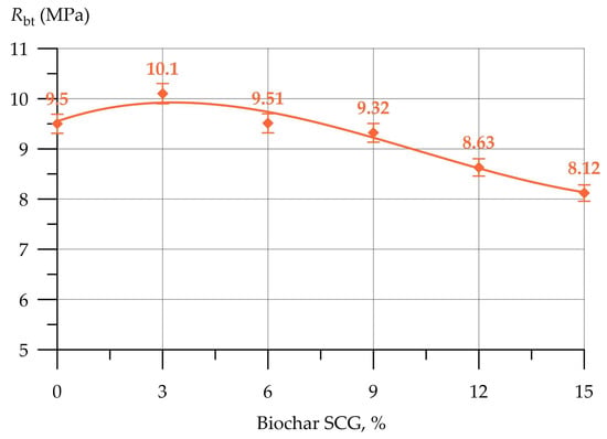 Flexural strength of cement paste (Rbt) at different BSCG contents.
