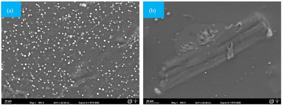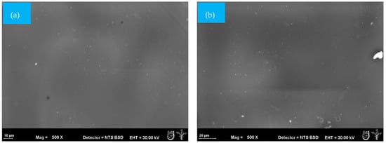 Both mulch films (Figure 1a,b) tend to have a uniform, smooth, transparent, and homogeneous appearance; furthermore, no material that has not dissolved is detected.