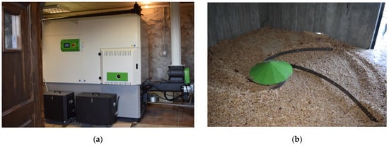 (a) PelleTech biomass boiler and (b) agitator feeding system installation in a primary school in Lehovo, Greece [17].