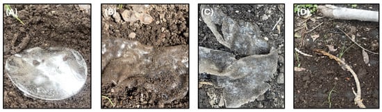 - Slezak, R.; Krzystek, L.; Puchalski, M.; Krucińska, I.; Sitarski, A. Degradation of bio-based film plastics in soil under natural conditions. Sci. Total. Environ. 2023, 866, 161401. [Google Scholar] [CrossRef] [PubMed]