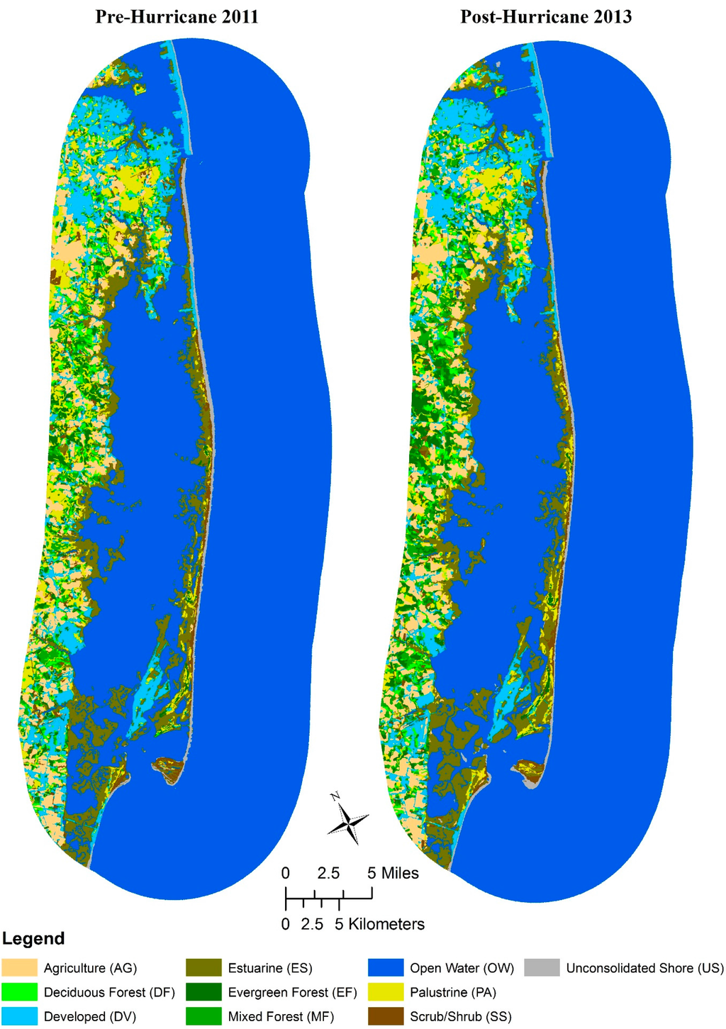 | Post-Hurricane Sandy | Landsat 8 OLI | 14 April 2013 | 5 September 2013 |