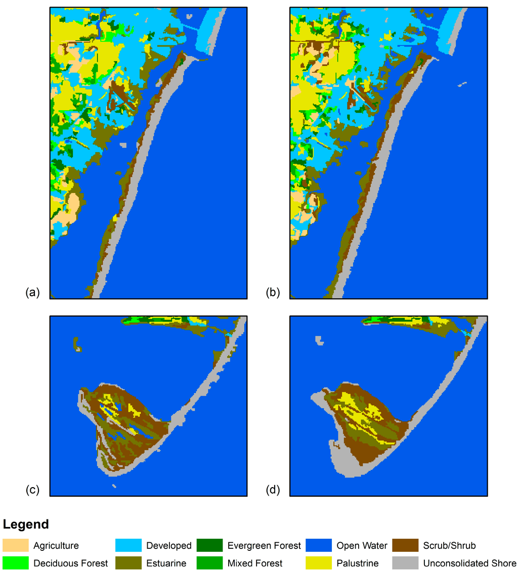 Hurricanes and other large coastal storms have significant impacts on human and vegetation communities but they are also important agents of ecological succession in coastal ecosystems [,]. There are direct impacts to coastal vegetation such as damages caused by wind and storm surge [,] or from increased soil salinity following a storm surge [,,]. These impacts can alter vegetation patterns within coastal habitats causing minor to irreversible changes to the landscape which in turn affects the wildlife communities that utilize these unique and rare coastal habitats. It is expected that there will be an increase in the frequency and intensity of hurricanes and other extreme storm events due to the effects of changing global weather patterns [,]. Sea level is also expected to continue rising due to glacial melting resulting in larger storm surges, greater flood damage and shoreline erosion [,,]. These factors make the accurate assessment of hurricane damages to coastal ecosystems critically important if resource managers are to understand how these changes may impact their lands so improved management strategies can be developed [,,].