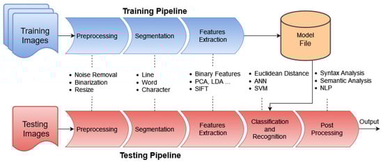 Nowadays, systems can analyze document layouts and recognize letters, text lines, paragraphs, and whole documents. Arguably, these modern systems can recognize different handwritten styles in French, Arabic, Urdu, Chinese, and other languages. It includes the utilization of machine learning techniques such as Convolutional Neural Networks (CNN) [], Recurrent Neural Networks (RNN) [], Convolutional Recurrent Neural Networks (CRNN) [], Gated-CNN [], Multi-Dimensional Long Short-Term Memory Recurrent Neural Networks (MDLSTM-RNNs) []. Despite the many significant advancements in the past few years, there are still many challenges that need to be addressed.
