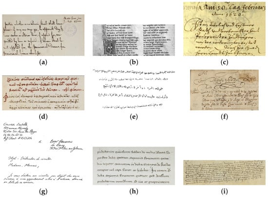 - Torres Aguilar, S.O.; Jolivet, V. Handwritten Text Recognition for Documentary Medieval Manuscripts. J. Data Min. Digit. Humanit. 2023. Available online: https://hal.science/hal-03892163v2 (accessed on 1 January 2024). [CrossRef]