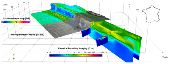 Another work in progress concerns the data approximation of coastal cliffs in Normandy (France) from topographic datasets and from infrared datasets (see Figure 12 and Figure 13).