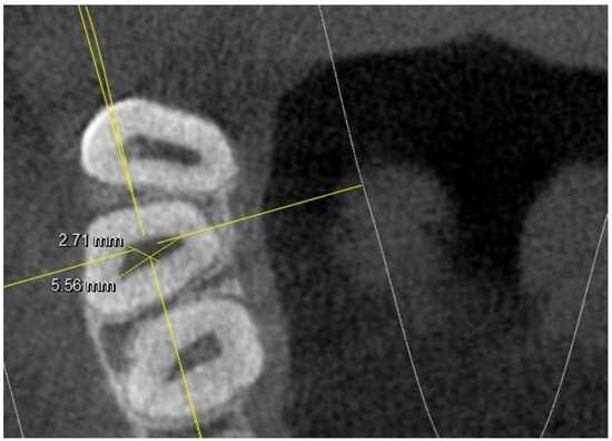 - Betancourt, P.; Navarro, P.; Cantín, M.; Fuentes, R. Cone-beam computed tomography study of prevalence and location of MB2 canal in the mesiobuccal root of the maxillary second molar. Int. J. Clin. Exp. Med. 2015, 8, 9128–9134. [Google Scholar] [PubMed]