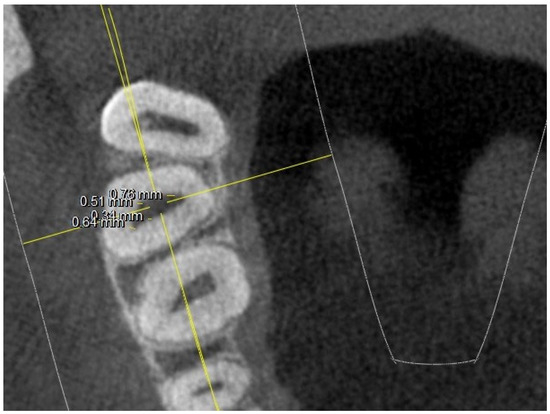 | 5 mm from the CEJ: MB-DB distance | 4.35 | 0.82 | 2.88 | 0.62 | 4.13 | 0.78 | 2.97 | 0.64 | ||