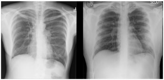 For the binary classification task used in this research, the dataset consisted of 15,000 X-ray images, labeled with two classes: (1) Normal (which meant that the patient was healthy and did not suffer from any pneumonia type); and (2) Abnormal (which meant that the patient was suffering from pneumonia because of Coronavirus or other types of viruses). Figure 3 shows an example of the dataset (X-ray images) classes used for the binary classification task: Normal and Abnormal, respectively, from left to right.