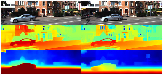Recent advancements have focused on enhancing stereo matching algorithms by reducing reliance on extensive 3D convolutional layers, with [27,28] proposing cost spatial propagation techniques. Further, to optimize performance, ref. [29] employed neural architecture search (NAS) technology to autonomously determine the most effective architecture for each phase of processing. These methodologies are currently at the forefront of the KITTI 2015 benchmark, representing the cutting edge in stereo matching technology [19].