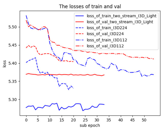 - For studying comparative performance, we train the RGB branch of the original two-stream I3D model and our two-stream I3D Light model using the Kinetics400 dataset. To use the pretrained original I3D weights [7,49] and reduce the training time, we change the pooling size of the last average pooling layer from 7 × 7 to 4 × 4. This ensures that the size of the output feature map from the last average pooling layer matches the input size of that next layer in the I3D model.