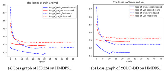 - We fine-tune the original I3D224 model and our YOLO-I3D model on the smaller HMDB51 dataset in order to check the performance of YOLO-I3D using transfer learning. During training, 32 frames of images of resolution 224 × 224 are used as input.