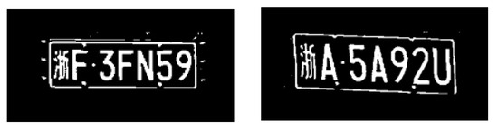Examples of the binarization plates. The Chinese character on the plates means the province where the vehicle is registered.