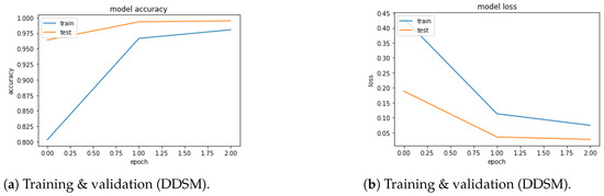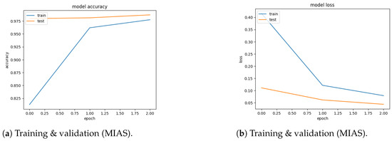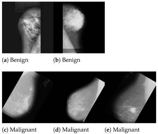 11], the authors began by removing noise, then adding a logarithmic spatial transform to improve the images, and finally, deleting the oblique and pectoral muscles and backdrop. Then, they used a fractional Fourier transform to obtain the coefficients of the time–frequency spectrum, which were then reduced using the PCA technique. In conclusion, the following performance results were obtained using the classifiers (k-nearest neighbors and SVM): in the case of SVM, the sensitivity was 92.22%, the specificity was 92.10%, and the accuracy was 92.16%. In addition, in [