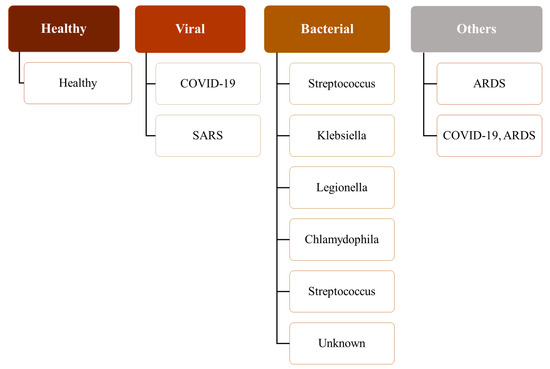 - Yao, J.; Dwyer, A.; Summers, R.M.; Mollura, D.J. Computer-aided diagnosis of pulmonary infections using texture analysis and support vector machine classification. Acad. Radiol. 2011, 18, 306–314. [Google Scholar] [CrossRef]