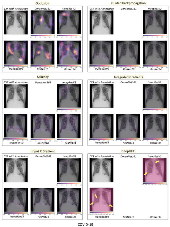 Chatterjee, S.; Saad, F.; Sarasaen, C.; Ghosh, S.; Krug, V.; Khatun, R.; Mishra, R.; Desai, N.; Radeva, P.; Rose, G.; et al. Exploration of Interpretability Techniques for Deep COVID-19 Classification Using Chest X-ray Images. J. Imaging 2024, 10, 45. https://doi.org/10.3390/jimaging10020045
