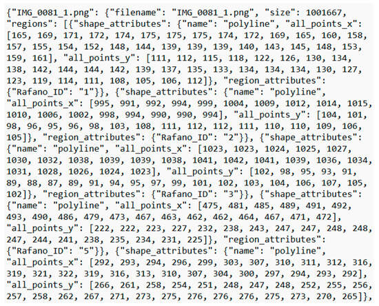 Pixel annotations were performed over the raw MS images using VIA (VGG Image Annotator, https://gitlab.com/vgg/via, accessed on 29 January 2024), which is open-source labeling software that was developed at the Visual Geometry Group (VGG), University of Oxford [44]. This software is designed to operate independently, without necessitating any form of installation or configuration on a personal computer. The annotations were subsequently exported in the form of JavaScript Object Notation (JSON).
