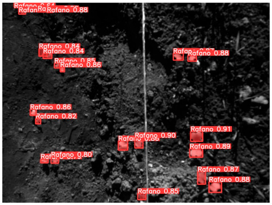 A group of deep learning models created for object recognition is represented by the YOLO (You Only Look Once) series. The most recent version, YOLOv8, was designed by the same team as YOLOv5, and it keeps the same architectural design. The YOLOv8 network performs additional tasks apart from object recognition and tracking, particularly instance segmentation, image categorization, and keypoint detection [51]. YOLOv8 supports five distinct model sizes (n, s, m, l, and x), each of which increases in depth and width from left to right. YOLOv8l-seg was chosen for the reason of optimum compatibility with our available computational resources. The YOLOv8l-seg network’s design is influenced by the YOLACT network’s principles [33], allowing it to segment objects in real time while maintaining a high segment mean average precision. In this study, the training and prediction of wild radish instances were carried out using the YOLOv8l-seg model.