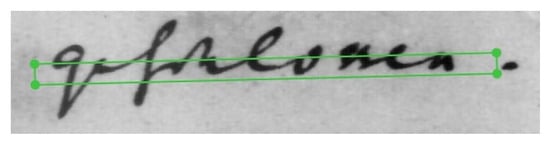 We implemented Mask-RCNN using the tensorflow object detection API from the official github (https://github.com/tensorflow/models/blob/master/research/object_detection/configs/tf2/mask_rcnn_inception_resnet_v2_1024x1024_coco17_gpu-8.config (accessed on 15 January 2022)). We performed three studies. First, we compared the line segmentation performance of Mask-RCNN with that reported by [17] in their Tables 4 and 5 for three U-Net networks on different historical databases, and also by [33] for the Dilated-FCN network. Second, we compared the performance of Mask-RCNN and the better performer among these U-Net networks on the DRoSB dataset. For each of these two studies, the evaluation was performed using the two metrics already discussed, the pixel-level metrics and the object-level metrics. Finally, since the ultimate goal of historical document analysis is the handwritten text recognition (HTR), a third study is dedicated to the implementation of the complete processing chain, comparing the transcription performance associated with either the Mask-RCNN segmentation or a U-Net network segmentation. We applied a hyperparameter tuning to the Mask-RCNN network, testing different anchor box scales and ratios. We found that small scales and horizontal ratios gave better performance. Therefore, we chose the following parameter scales: [0.25, 0.5, 1.0], and aspect_ratios: [1.0, 2.0, 4.0, 8.0]. This implementation did not include any post-processing. In Study 1, the implementation of the U-Net networks realized by the authors to whom we refer in terms of segmentation performance included post-processing (see [17,33]). In Study 2, we implemented Doc-UFCN using the default hyperparameters of the models provided by the author (https://gitlab.com/teklia/dla/doc-ufcn (accessed on 1 September 2022)). No hyperparameter tuning process was performed for this network (which includes post-processing), since it is already optimized for text line segmentation.