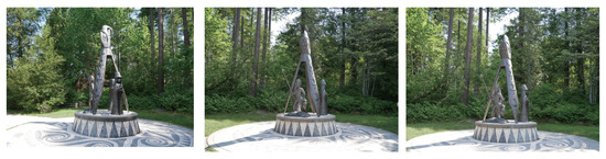 Examples of images of ”Shore to Shore”, which is a 14-foot bronze-cast sculpture located in Vancouver’s Stanley Park, Canada, taken by the authors in June 2023.
