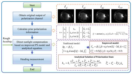 Flow chart of polarization orientation method based on direct sunlight compensation.