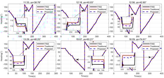 Heading results of different methods for outdoor experiment with different solar zenith angles.