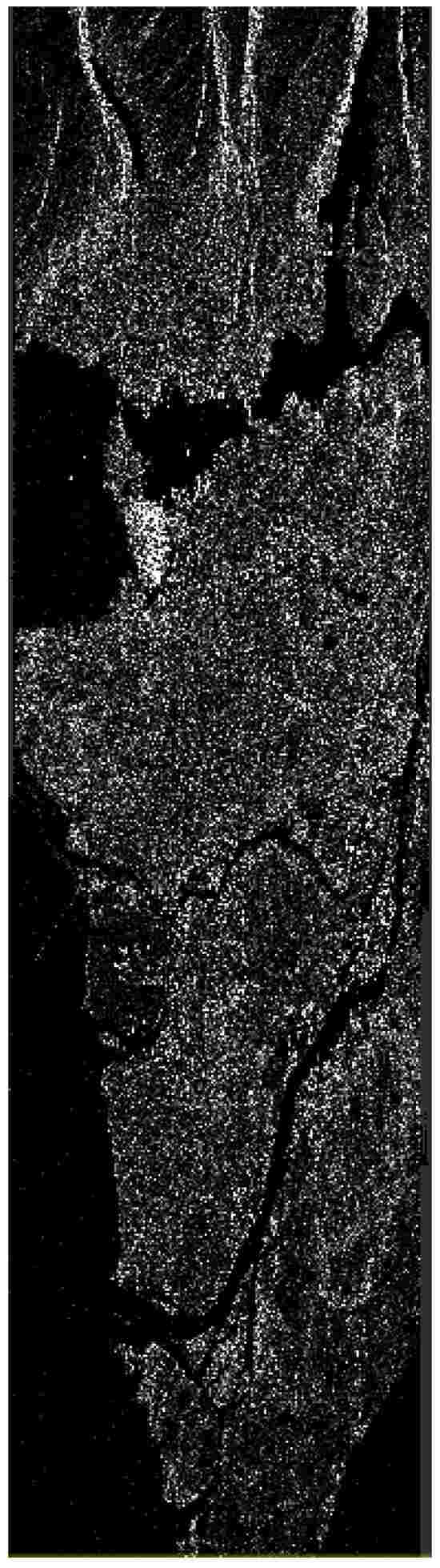 The broader area of Vancouver, as represented by the Intensity of the HV channel of PolSAR SLC data.