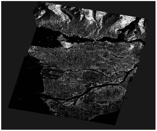 Radiometric calibration plays a crucial role in standardizing the raw digital image data obtained from satellites into a consistent physical scale. This procedure depends on documented reflectance data collected from various objects present on the surface of the Earth. Since the image is acquired in the radar’s slant range, distortions associated with side-looking geometry may arise, and the pixels may lack geographical coordinates. To address this, the Range Doppler terrain correction operator available in SNAP was utilized. This method is employed to geocode SAR images and produce map-projected products (Figure 3). During this process, orbit state vector information from the metadata, radar timing annotations, parameters for converting slant to ground range, and data from the reference digital elevation model are integrated to determine precise geolocation information.