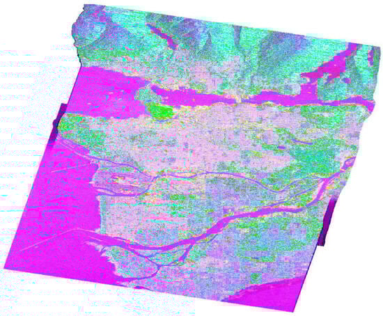 Color-coded PolSAR image of the broader area of Vancouver, based on the Cameron CTD.