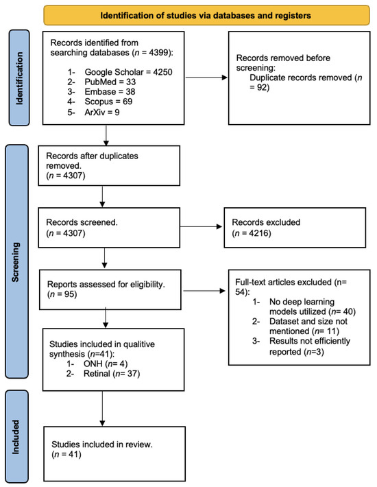 - Population (P): Studies focusing on the utilization of DL models with retinal imagery obtained from either clinical or research settings.