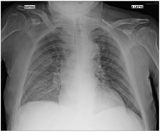 Figure 3. Bedside CXR image of a 92-year-old patient classified by the ML as “Hospital”.