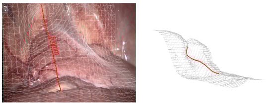 Similarly, Malti et al. [] combine both geometric and photometric cues to reconstruct deformable human organs robustly. A visualization of a reconstructed scene is presented in Figure 7. The evaluation of their method features an RMSE less than 0.4 mm on a synthetic deformation model.