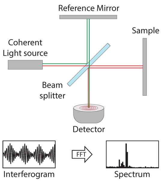 - Giacomo, P. The Michelson interferometer. Microchim. Acta 1987, 93, 19–31. [Google Scholar] [CrossRef]