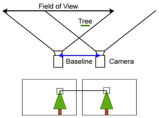 The two primary forms of representing 3D data of stereoscopic scenes are the disparity map and the point cloud []. The disparity map is a pixel-based inverse representation of the scene’s depth range from a given perspective []. The disparity range in an image can be calculated, for example by Confidently Stable Matching [], or statistical analysis of the spatial correlation between stereo images []. The point cloud is a set of 3D data points that represent the captured scene in 3D space. A conversion between both is possible using the intrinsic and extrinsic camera parameters obtained from a calibration process []. To evaluate the accuracy of an algorithm, disparity maps, and point clouds can both be used to compare a result against ground truth data.