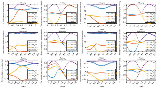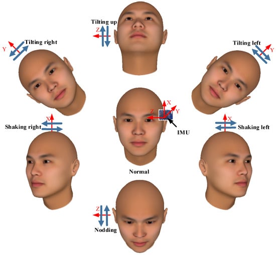 Enabling machines to understand the meaning behind human behavior has become one of the research topics that has aroused great interest among researchers. In particular, head gesture recognition plays an important role in human–computer interfaces. Currently, the main methods for detecting head movements include image processing, depth sensing, radar technology, and inertial sensors [1]. Head movement detection has a wide range of applications in various fields, such as human–computer interactions [2,3,4], assisted driving [5,6,7], virtual reality [8,9,10], augmented reality [11,12], and more.