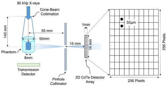 The data used in this study consists of XRF images acquired in a previous study using small-animal-sized phantoms consisting of contrast-agent-filled target tubes []. The following briefly describes the experimental setup and image acquisition procedure for completeness.