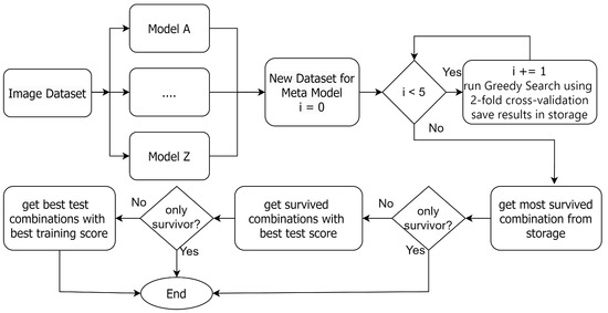 Fatemifar et al. [42] proposed a stacking ensemble for face spoofing anomaly detection that consisted of 63 base classifiers and a Gaussian Mixture Model (GMM) as the meta-classifier for the second stage. The proposed stacking ensemble utilized all 63 classifiers by assigning weights ranging from −8 to 8. While the application for this ensemble is different, it is worth noting that assigning values for each of the 63 weights, even those not performing well, might not result in the most optimized algorithm, especially for the larger dimensional images.