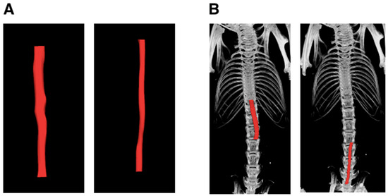 Micro-computed tomographic angiography (μCTA) is another valuable tool available in the preclinical setting [17]. μCTA can generate three-dimensional (3D) tomographic data at a microscopic level of resolution (with a voxel size of 100 mm3) by capturing a multitude of two-dimensional (2D) projection series from different angles surrounding the subject [17,18]. This study assessed the intra- and inter-observer variability of μCTA-generated 3D aortic volume reconstructions and compared them to the 3DLV obtained using µUSS. Our investigation compared the assessment procedures for suprarenal and infrarenal aortic segments using μCT and USS, revealing methodological variations influenced the results. The main difference between these methods is the positioning of the animals during imaging. Specifically, for USS imaging, the mice were placed in the supine position and stretched out, whereas for μCT scanning, they were positioned in the prone position. It is important to emphasise the importance of comparing different imaging techniques comprehensively to fully comprehend their specific advantages and drawbacks when evaluating aortic measurements.