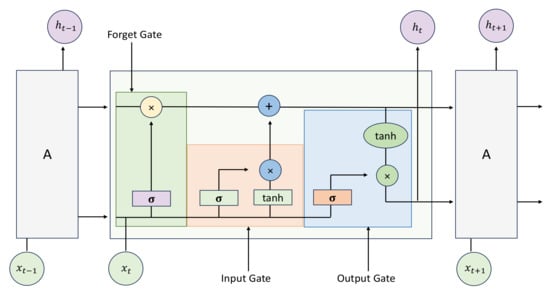 Here, is the sigmoid function, is a hyperbolic tangent function, and W is the weight matrix. Forgetting gate indicates how much information needs to be discarded and saved in the previous moment, while the remaining useful information is used at the current moment to handle the problems of gradient vanishing and exploding. Input gate is used for filtering new memory expressions by discarding unnecessary information and retaining new useful information. Add the memory retained at the previous time in the network to the memory retained at the current time to obtain a new memory. The layer generates a set of candidate values, which will be added to the storage unit if the input gate allows. According to (7), update the storage unit based on the output of the forget gate , input gate , and new candidate value . In Formula (8), the output gate controls the state and memory information of the hidden state. The new memory is calculated by adding the memory retained at the previous time in the network to the memory retained at the current time, as shown in Formula (9). Operate on the new information obtained through the function with the new memory to obtain the current required information for output .
