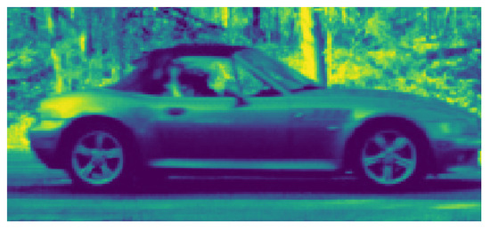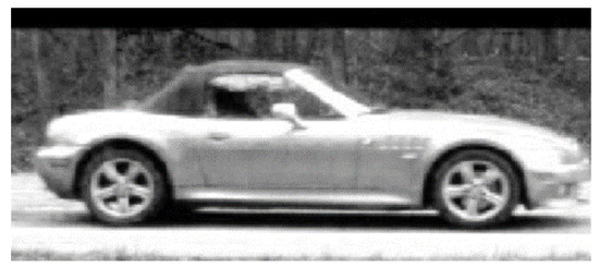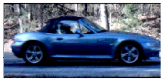 This study adopts the single-shot multibox detector (SSD) Mobilenet V2 network [26] for vehicle detection in video frames, following the approach in [24]. The SSD model, pre-trained on the Common Objects in Context (COCO) dataset [27], leverages the Caffe framework to place bounding boxes around vehicles in the frame. For this work, we retrained the SSD on a curated set of 543,926 images of 11,918 vehicles. Images were cropped and resized to a uniform , while preserving their original aspect ratios. They were flipped as necessary to standardize vehicle orientation, as depicted in Figure 17. Additionally, we trained a detector [24,25] to locate wheels, with a second retrained SSD instance providing coordinates of bounding boxes. To improve matching accuracy, we performed a pre-processing “wheel locking” step [24] to center front and rear wheels on the same two pixel locations in each image.