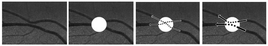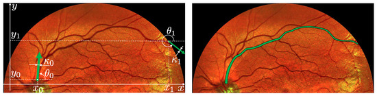 Finding blood vessels (salient lines) in the fundus photography of the human retina. Specifications: x, y are spatial coordinates, is the orientation, and is the thickness of lines.