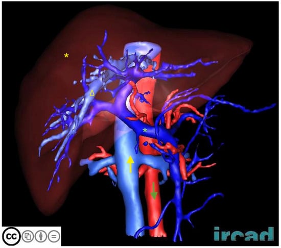 - Couinaud, C. Liver anatomy: Portal and suprahepatic or biliary segmentation. Dig. Surg. 1999, 16, 459–467. [Google Scholar] [CrossRef]